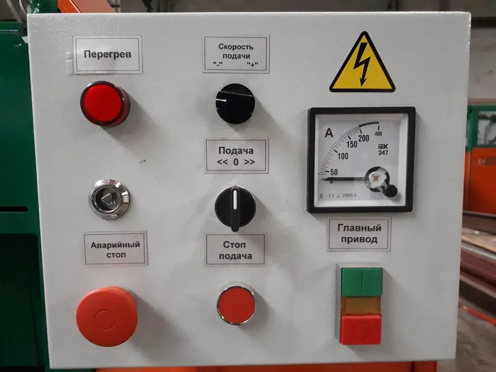 Станок кромкообрезной многопильный оборудован когтевой защитой для предотвращения обратной подачи на входе и для обеспечения безопасности при распиловке путем поднятия защиты. Расстояние между пилами регулируется проставками и максимальное количество пил предусмотренное для установки составляет 10 шт. Максимальная скорость пиления составляет 36 метров в минуту.