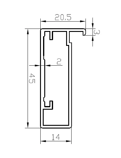 Профиль фасадный 45х20, фасад 3 мм, под стекло 4 мм НЕРЖАВЕЙКА темная (L- 2,9 м)