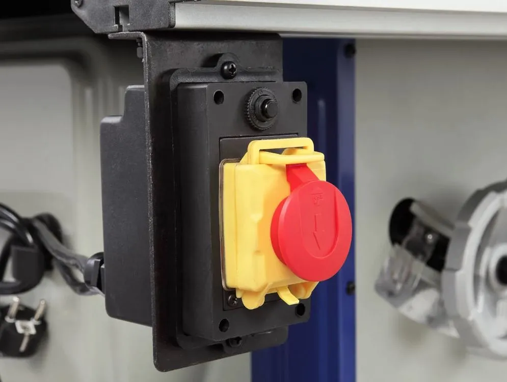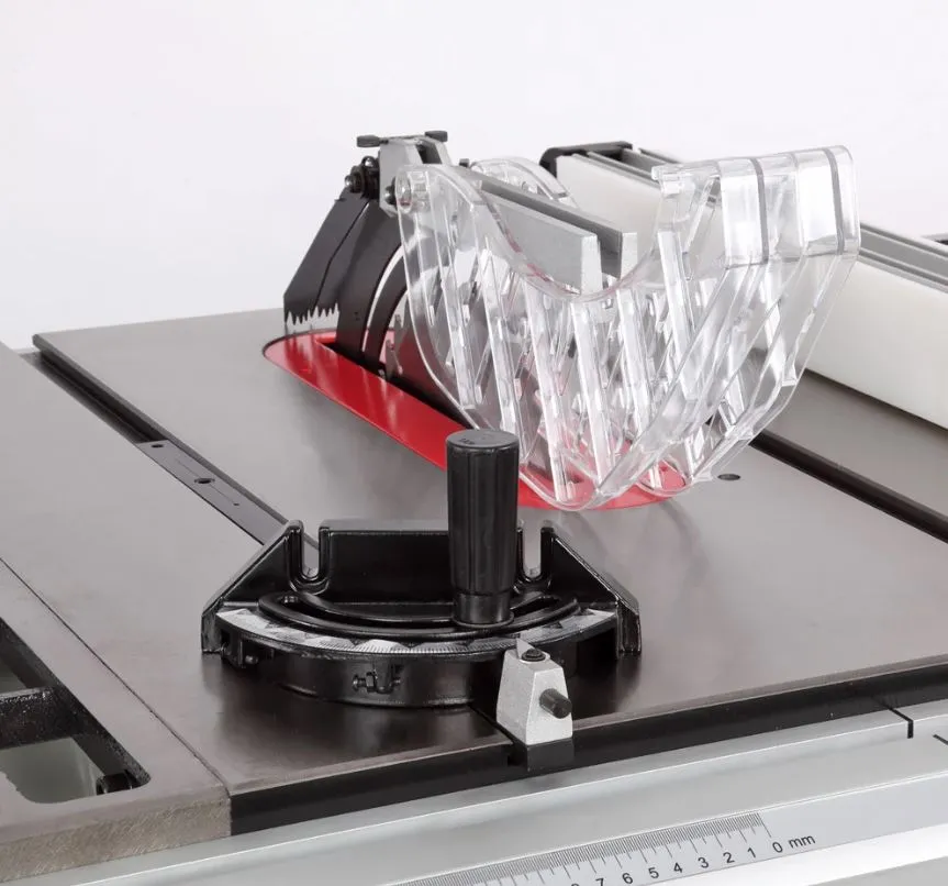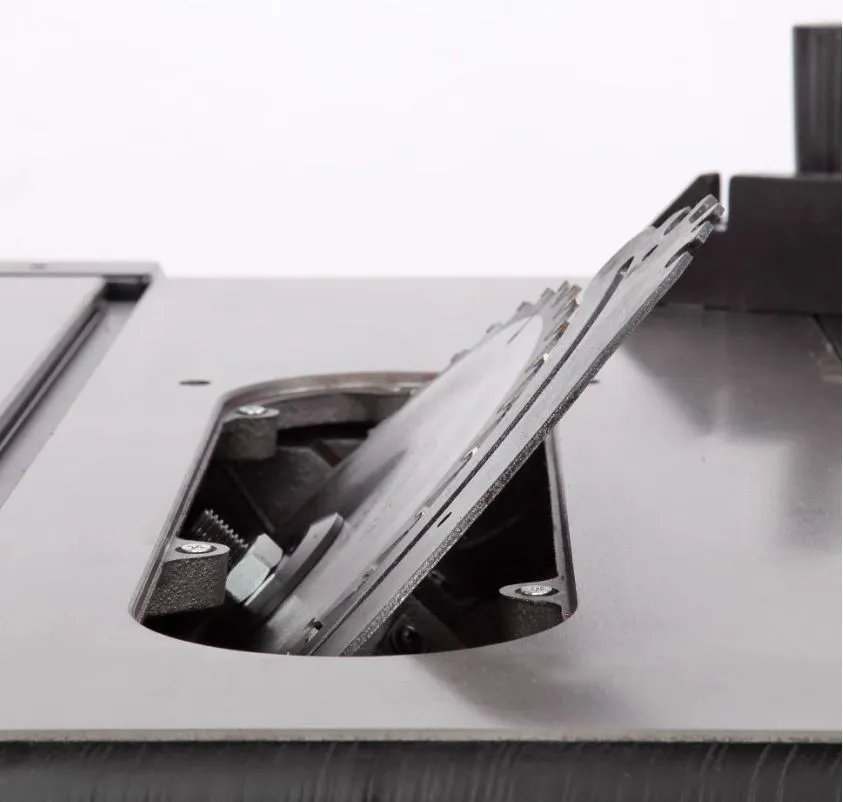 Рабочий стол и дополнительные секции выполнены из чугуна, что придает модели повышенную прочностью и износостойкость. Стол имеет два стандартных паза для установки углового упора или дополнительных приспособлений.