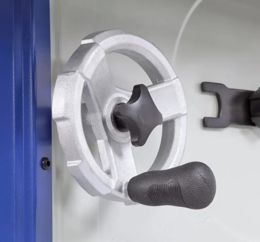 - Перемещение станка осуществляется благодаря удобной системе выдвигаемых поворотных колес.