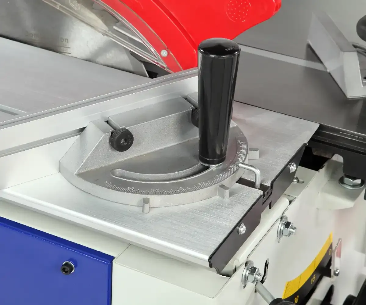 Станок оснащен основным чугунным столом, одним дополнительным столом из листовой стали, подвижным столом из алюминиевого профиля. Основной и подвижный стол имеют по одному пазу для установки угловых упоров или дополнительных приспособлений. Корпус изделия закрытый, изготовлен из листовой стали. Двигатель асинхронный (2200 Вт). Питание осуществляется от однофазной сети переменного тока напряжением 230 В. На корпус выведены основные элементы управления станком: маховики регулировки подъема/опускания пильного диска и регулировки угла наклона пильного диска, выключатель, рукоятка блокировки каретки. Кроме того, на нем размещены кронштейн для толкателя и патрубок для отведения отходов резания. Параллельный упор фиксируется на передней направляющей с помощью эксцентрикового зажима.