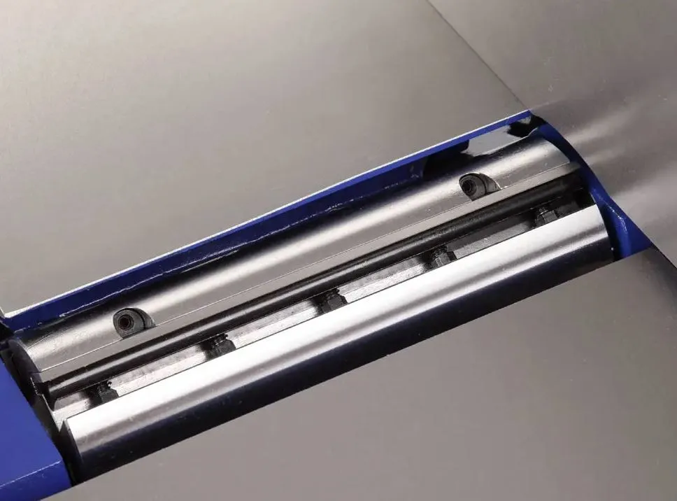 Удлиненный стол нужен для обеспечения прямолинейности. Даже довольно габаритная заготовка, уложенная на него, будет иметь надежную опору, оператору остается только перемещать ее в горизонтальной плоскости и немного прижимать к поверхности стола. Имеет подкатное приспособление. Возможна замена ножевого вала на Helical или Spiral.