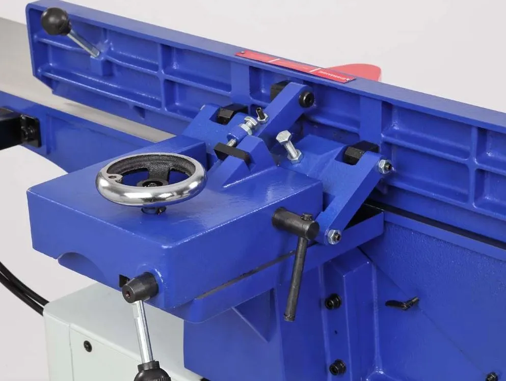 Имеет средние размеры, максимальная ширина обрабатываемой заготовки составляет 203 мм. Все основные детали отлиты из чугуна, рабочие поверхности фрезерованы. Глубина регулировки подающего стола до 16 мм. Длина загрузочного/ приемного столов - 1105/897.