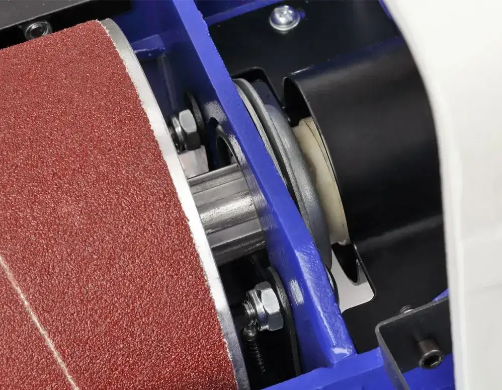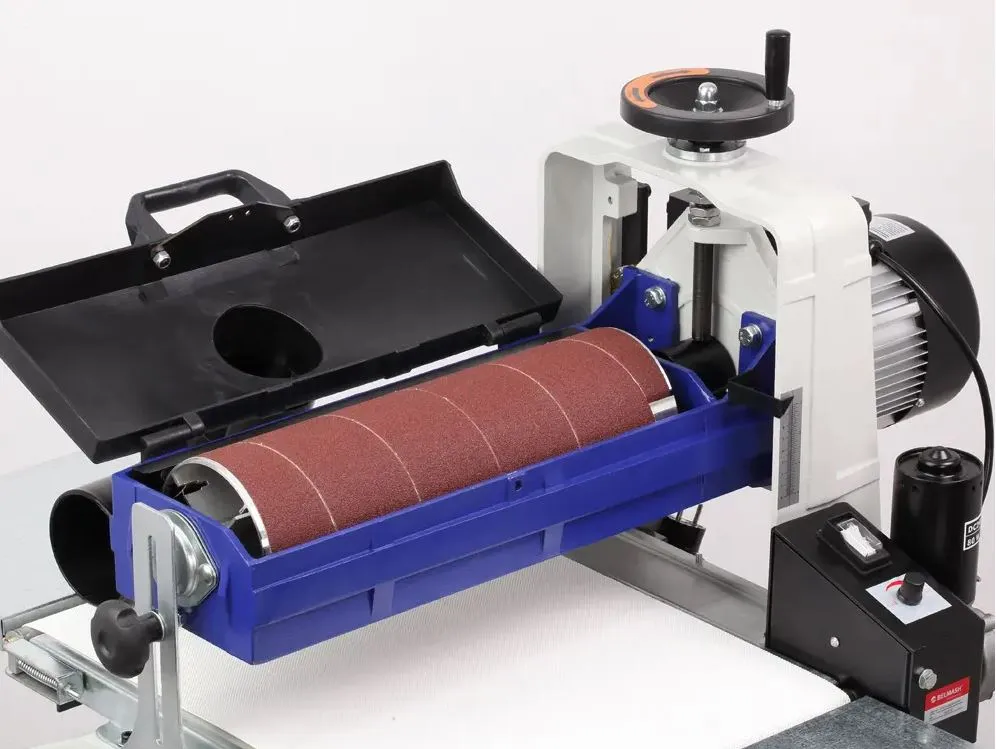 Основной рабочий орган – шлифовальный барабан длиной 565 мм и диаметром 132 мм, на который намотана шлифовальная лента. Частота вращения шлифовального барабана составляет 1440 оборотов в минуту, что достигается благодаря асинхронному электродвигателю мощностью 1500 Вт.