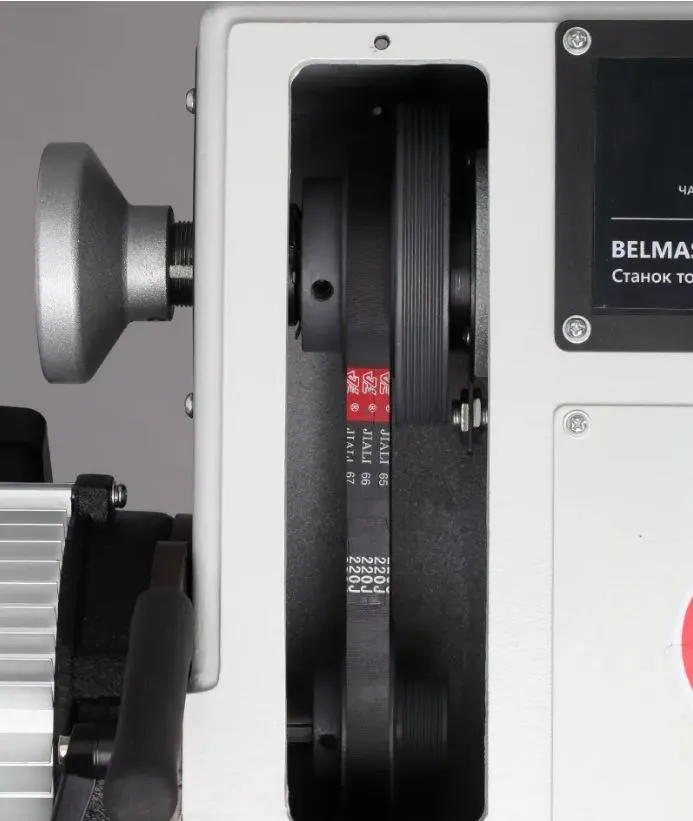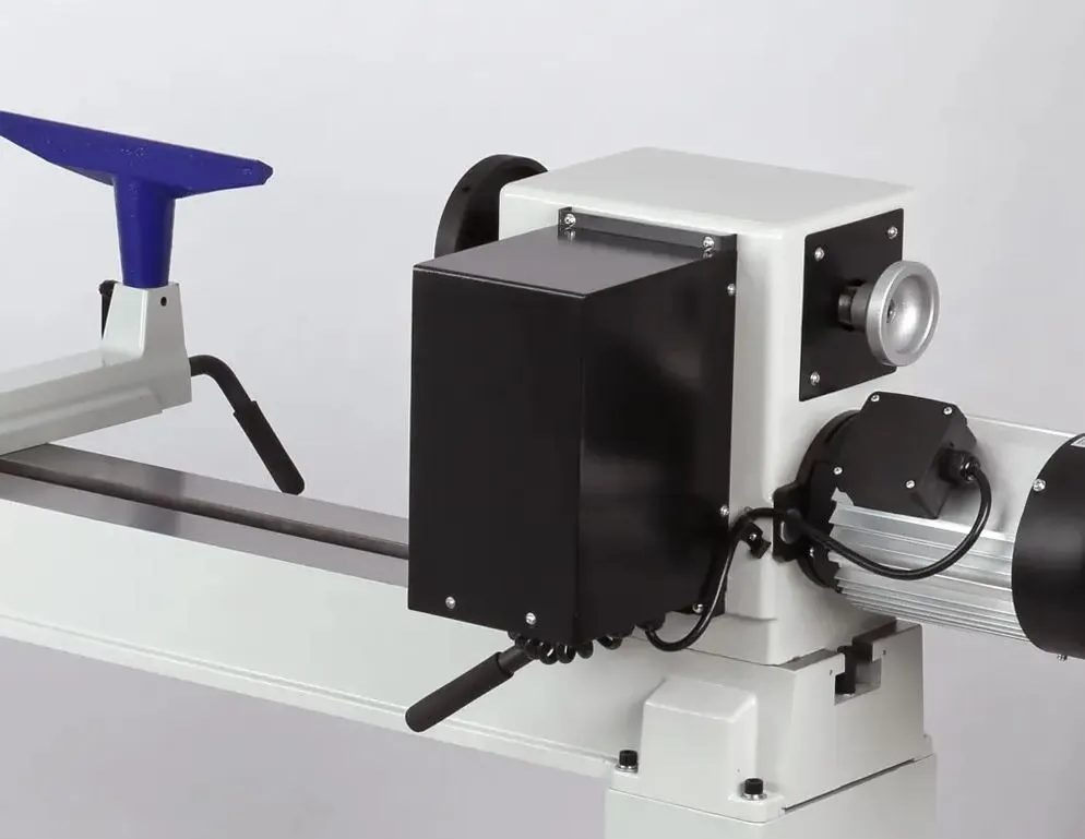 Станок имеет мощный асинхронный двигатель – 1500 Вт. Диапазонов скоростей два: низкий - от 0 до 1200 об./мин., и высокий – от 0 до 3200 об./мин. Скорость регулируется плавно с помощью частотного преобразователя. Отличительная особенность – выносной пульт управления с магнитной фиксацией.
