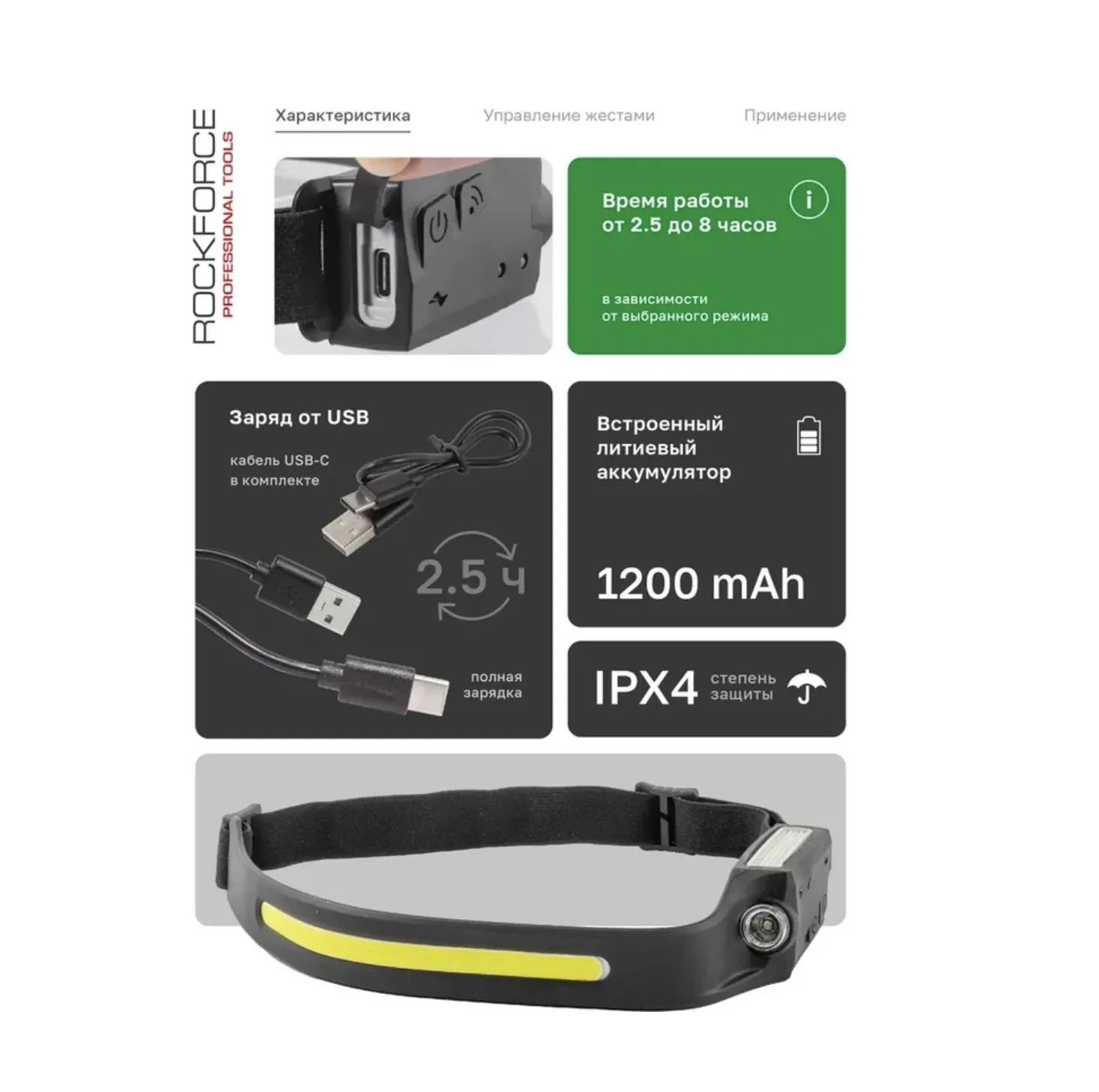 Гибкая и мягкая регулируемая резинка обеспечивает надёжную посадку без давления или натирания. Ударопрочный и водонепроницаемый корпус защищает от повреждений и влаги, а компактный форм-фактор позволяет легко сложить фонарь и носить в кармане.