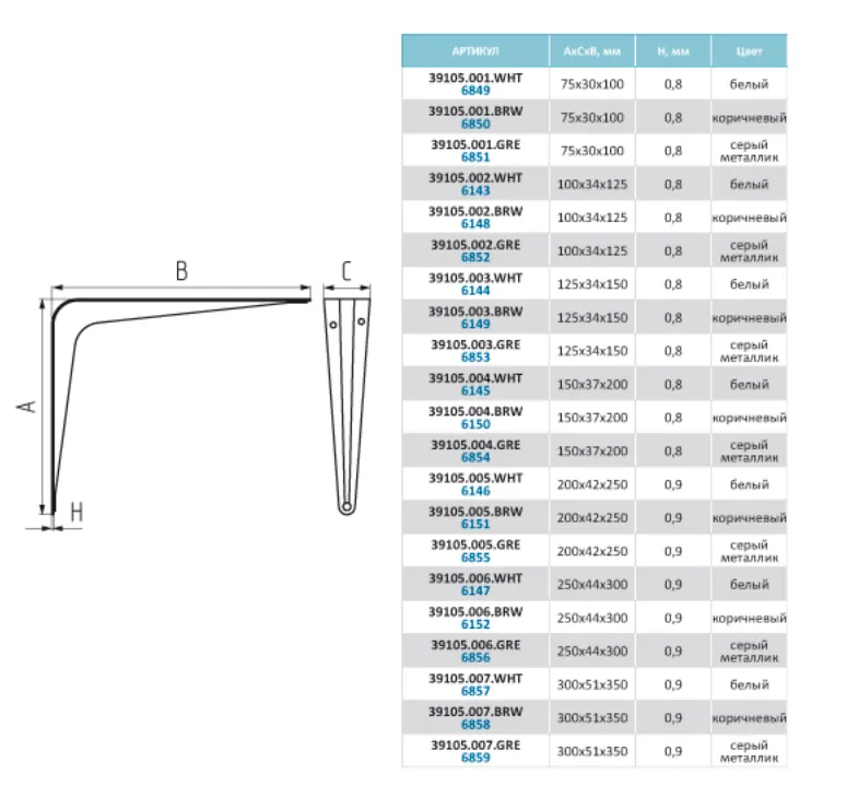 Полкодержатель 39105.003 125х34х150 сталь 0,8мм, белый
