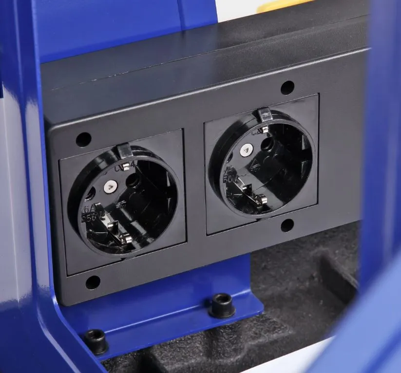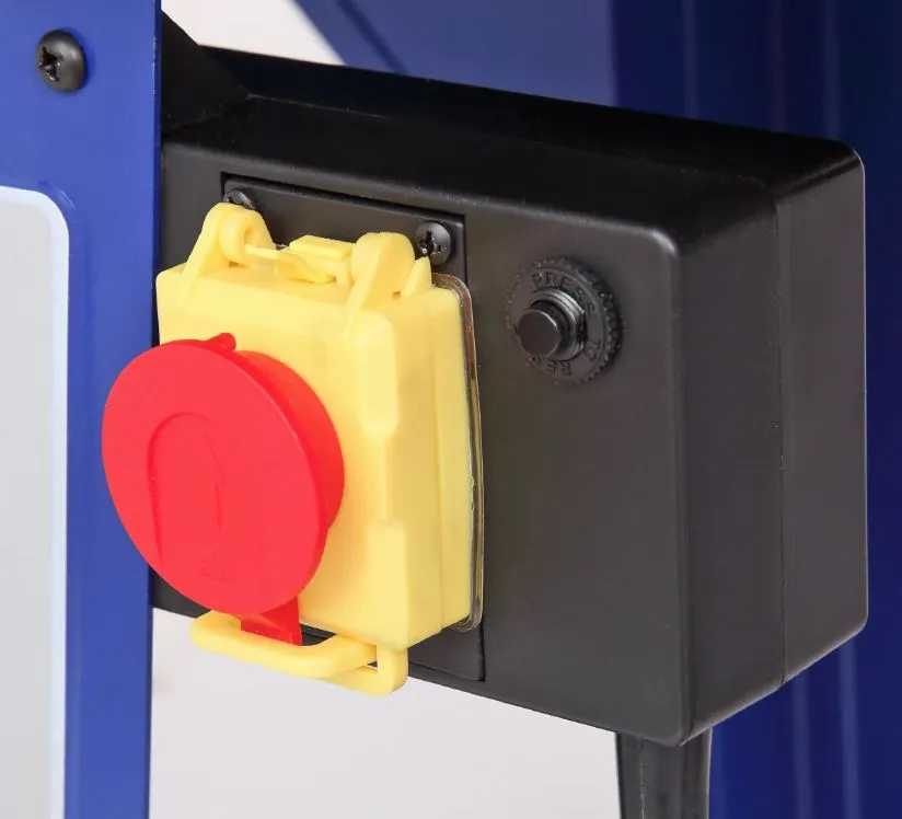 Фрезерный стол совместим с оборудованием большинства производителей, благодаря трем монтажным пластинам, входящим в комплект поставки. Токовый предохранитель защищает от перегрузок и замыканий сети. Установленный магнитный пускатель не даст оборудованию самостоятельно включится после незапланированного отключения электроэнергии. Рабочий стол из чугунного литья, благодаря этому снижается вибрация и как следствие увеличивается качество обработки. Дополнительные боковые расширения стола из листовой стали увеличивают рабочую поверхность до 1150 мм в длину. Высота стола составляет 450 мм, что позволяет установить фрезерный лифт BELMASH D033A. Для монтажа лифта нужно снять с него предустановленную пластину.