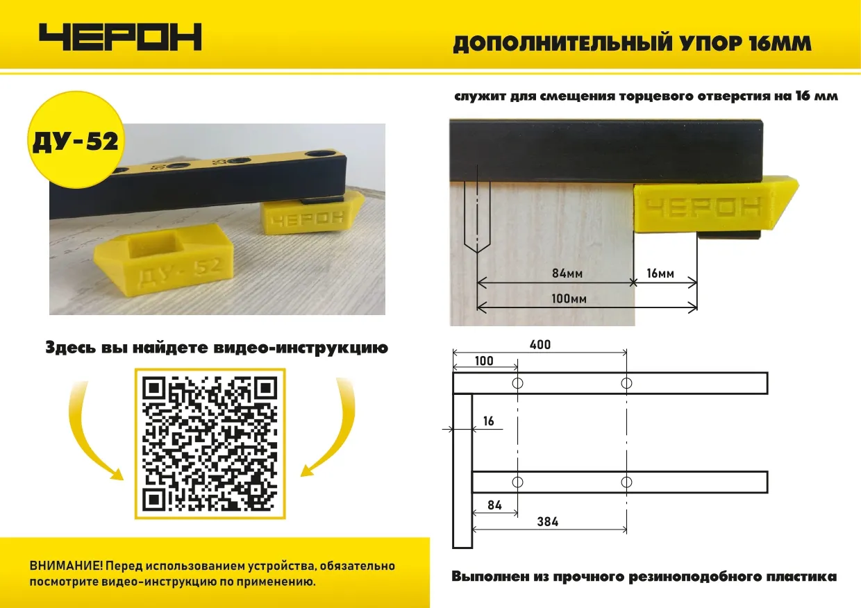 Дополнительный упор ДУ-52 служит для установки зазора 16мм на торцевых кондукторах при соединении ЛДСП 16мм