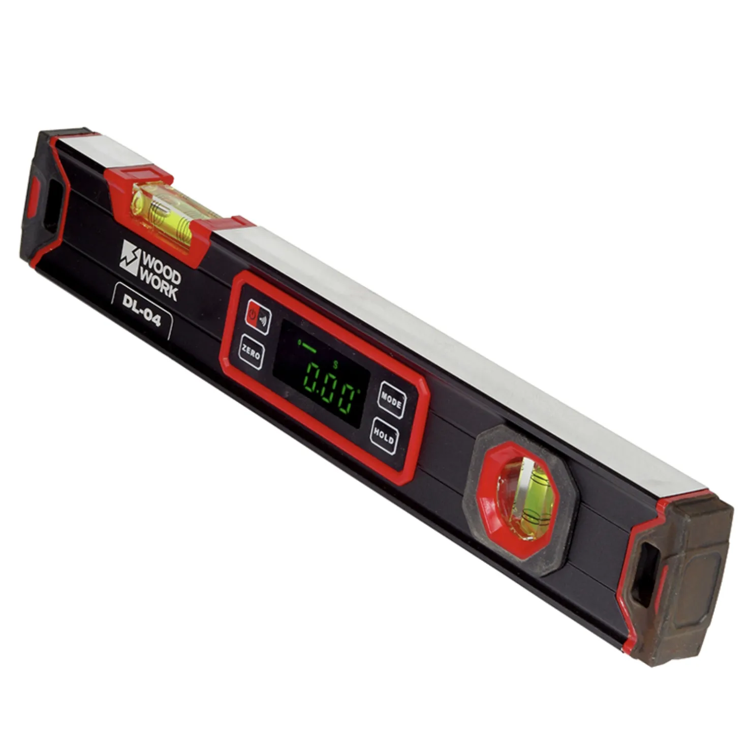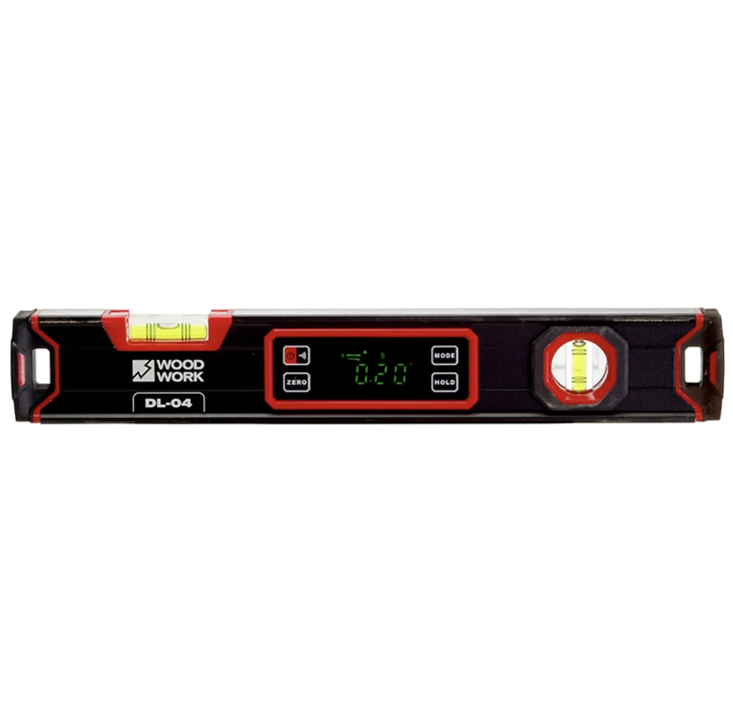 • цифровой уровень DL-04 WOODWORK с двумя пузырьковыми индикаторами - отличный выбор для разных работ как внутри помещений, так и снаружи