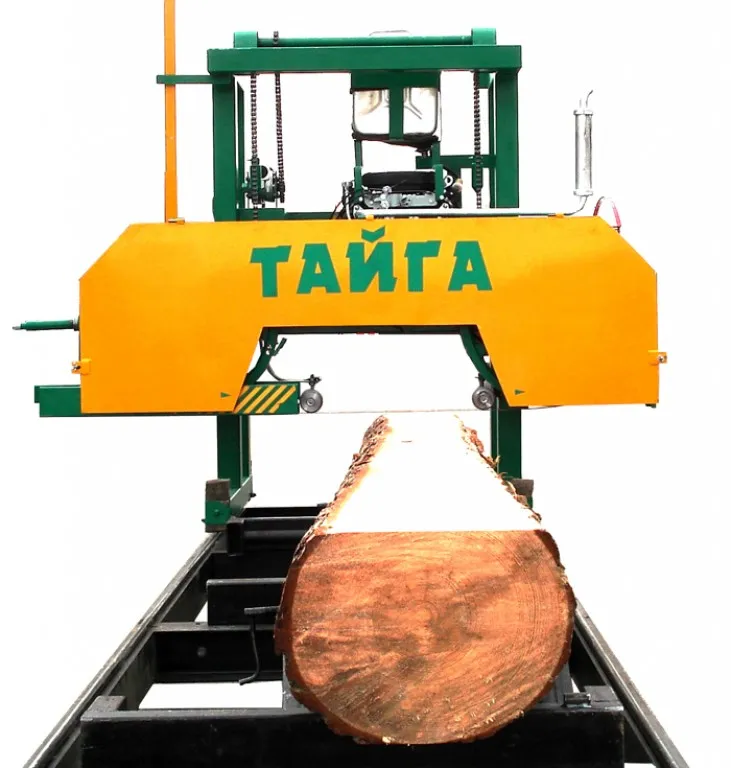 - Пилорама ленточная “Тайга Т-3Б” пилит узким ленточным полотном толщиной всего 1 мм и благодаря этому полезный выход пиломатериала составит от 70% и выше