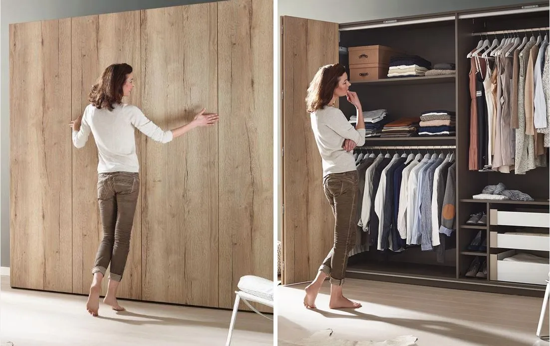 WingLine L производства компании Hettich — это универсальная в применении система фурнитуры для складных дверей, которую можно установить в гардеробе, нише или верхнем кухонном шкафу.