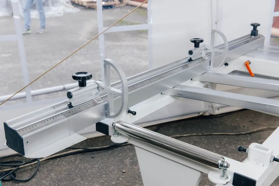 ПОПЕРЕЧНАЯ ЛИНЕЙКА Поперечная линейка - телескопическая, выполнена из качественного многогранного профиля, шкала спрятана внутри профиля, флажковые упоры имеют жесткую фиксацию. Сама линейка жестко крепиться к поддерживающему столу. Все это позволяет станку сохранять точно установленные размеры при работе и перенастройках. |