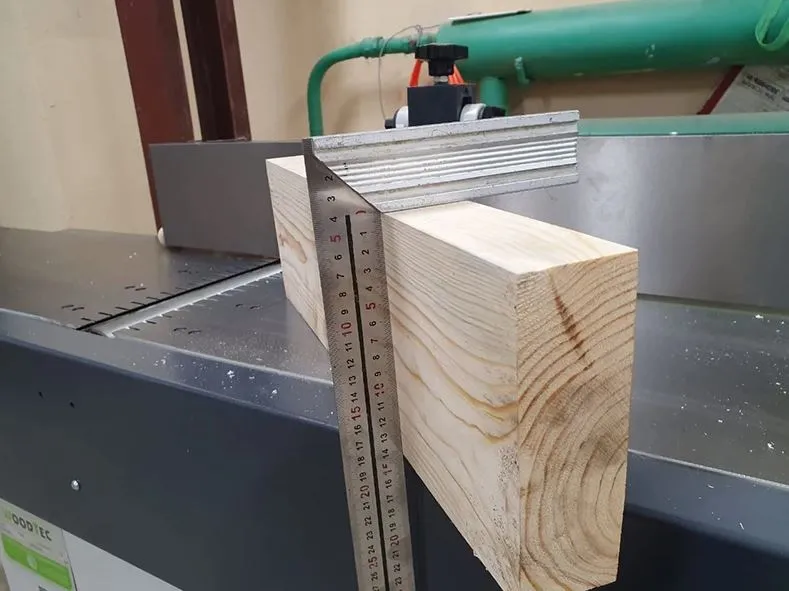 - Удобная настройка направляющей линейки на необходимую ширину строгания и угол от 90° до 45°