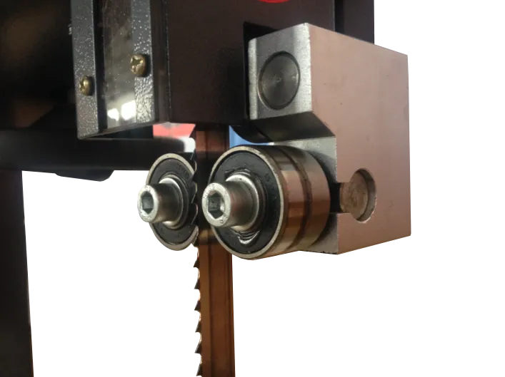 Направляющие подшипники. Находятся сверху и снизу стола. Придают пиле устойчивость во время пиления, повышая точность реза и увеличивая срок службы пильного полотна.