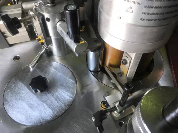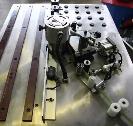 - Гильотина для предварительной резки толстого кромочного материала из ПВХ или АBS, с макс. сечением 3 x 40 мм;