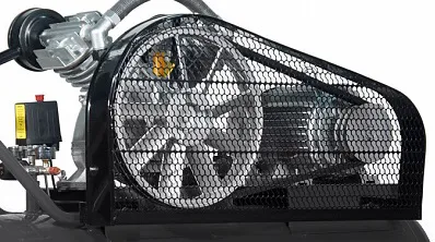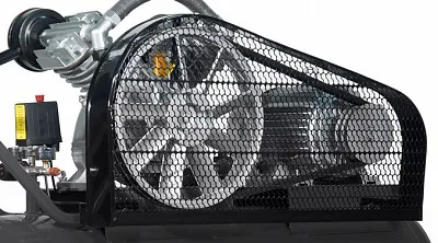Ременный привод. Промышленные компрессоры имеют ременный привод, который позволяет существенно уменьшить число оборотов коленчатого вала. Низкая скорость вращения компрессора гарантирует минимальный уровень шума и долгий срок службы.