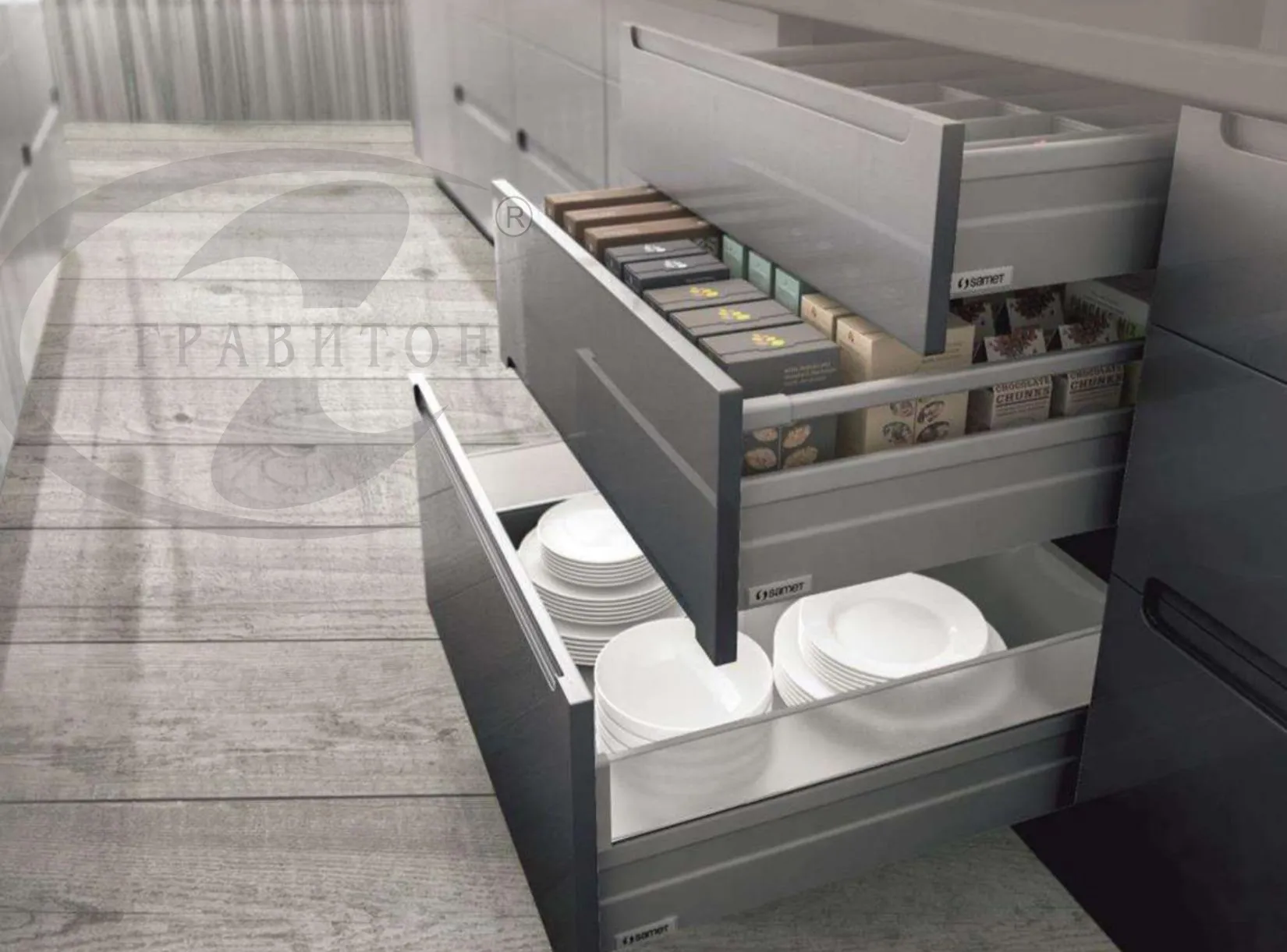Улучшенные характеристики и элегантная конструкция Alphabox Samet lock-fix придает изысканность внутреннему пространству мебельного изделия. Alphabox адаптируется к условиям заказчика, реализуя высокий уровень практичности. Технология полной синхронизации направляющих и встроенный доводчик обеспечивают бесшумное выдвижение простым касанием. Монтаж данной системы выдвижения максимально прост - Вам не потребуется дополнительных...Описание