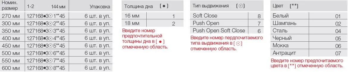 Глубина 270/ 300/ 350/ 400/ 450/ 500/ 550/ 600 мм