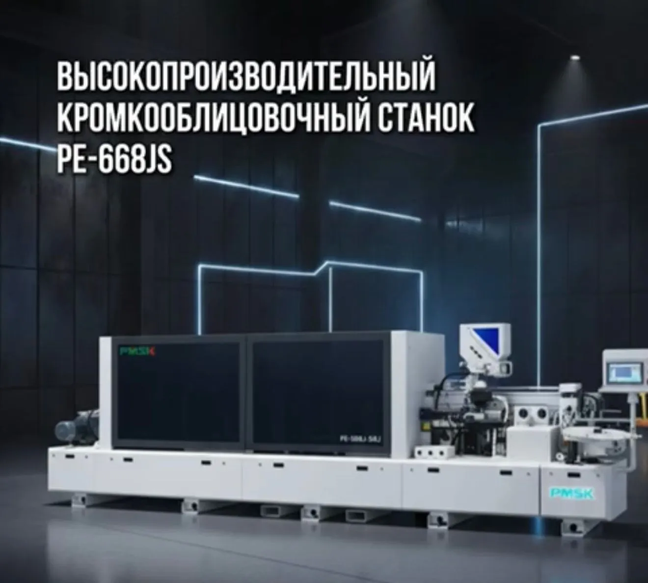 2.Высокопроизводительный кромкооблицовочный станок PE-668JS. Демонстрация в режиме нон-стоп — оцените качество и стабильность работы оборудования вживую.