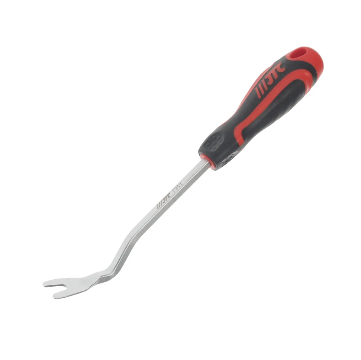 Завести инструмент под край дверной панели, вставить в крепление и затем поддеть.